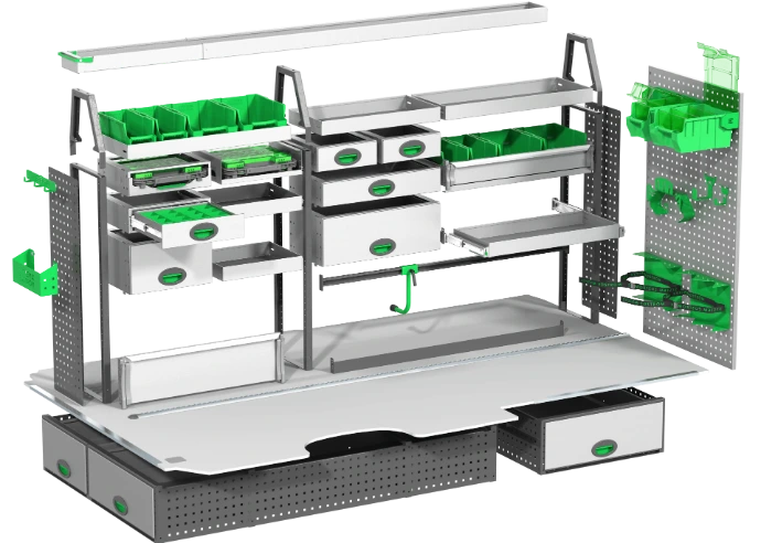 Wir bieten das flexibelste Einrichtungssystem auf dem Markt für mobile Handwerker. Unser System wurde mit Fokus auf höchste Qualität, maximale Sicherheit und einzigartige Flexibilität entwickelt. Dadurch können Sie die Fahrzeugeinrichtung für Ihren Kastenwagen ganz individuell gestalten – exakt abgestimmt auf Ihr Fahrzeug, Ihre Anforderungen und Ihre Arbeitsweise.